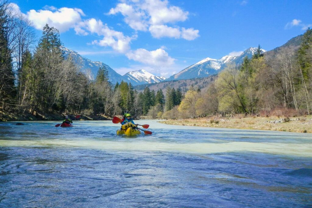 Etwa 25 m3 in Eschenlohe schienen verlockend. So brachen 3 Packrafts mit der RB6 von München Richtung Süden zur Loisach auf. Der formidable Käsekuchen und Cappuciono im Cafe Energy Lab am Bahnhof ließ uns erneut keine Wahl. Es sollte also von Farchant gestartet werden. Zugegebenermaßen ist das eigentlich immer so 😉