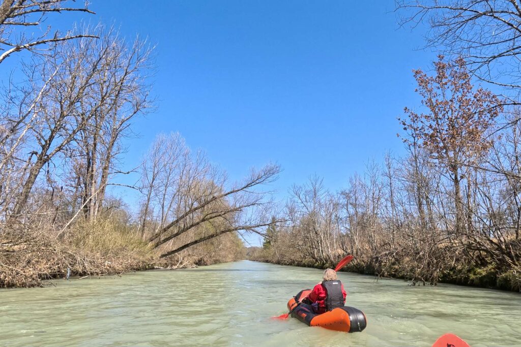 Bei etwa 25 m3 liegt unser Lieblingspegel für diesen Teil der Loisach. Es geht relativ flott dahin und trotzdem sind nicht alle Kiesbänke verschwunden.