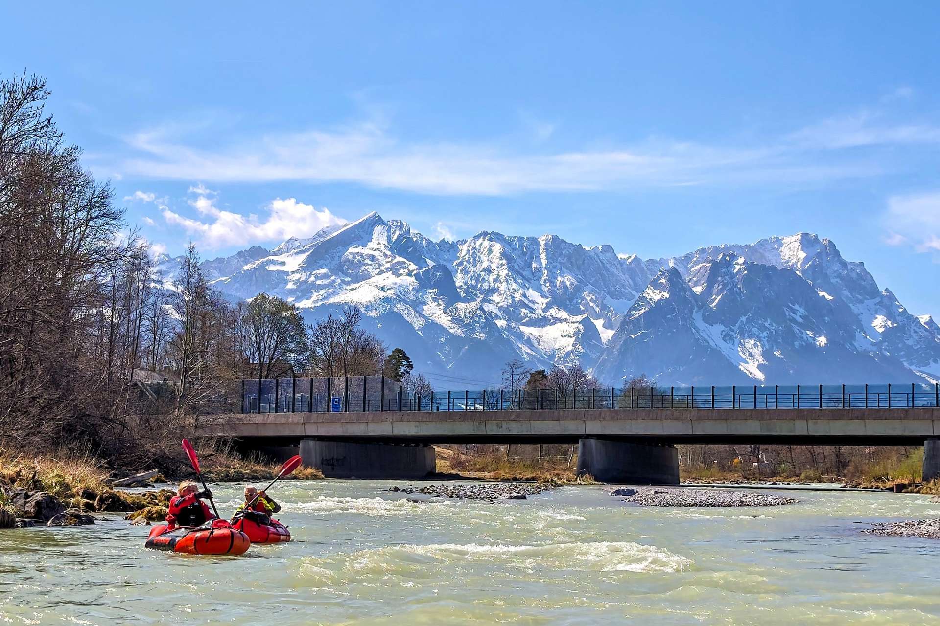 Etwa 25 m3 in Eschenlohe schienen verlockend. So brachen 3 Packrafts mit der RB6 von München Richtung Süden zur Loisach auf. Der formidable Käsekuchen und Cappuciono im Cafe Energy Lab am Bahnhof ließ uns erneut keine Wahl. Es sollte also von Farchant gestartet werden. Zugegebenermaßen ist das eigentlich immer so 😉